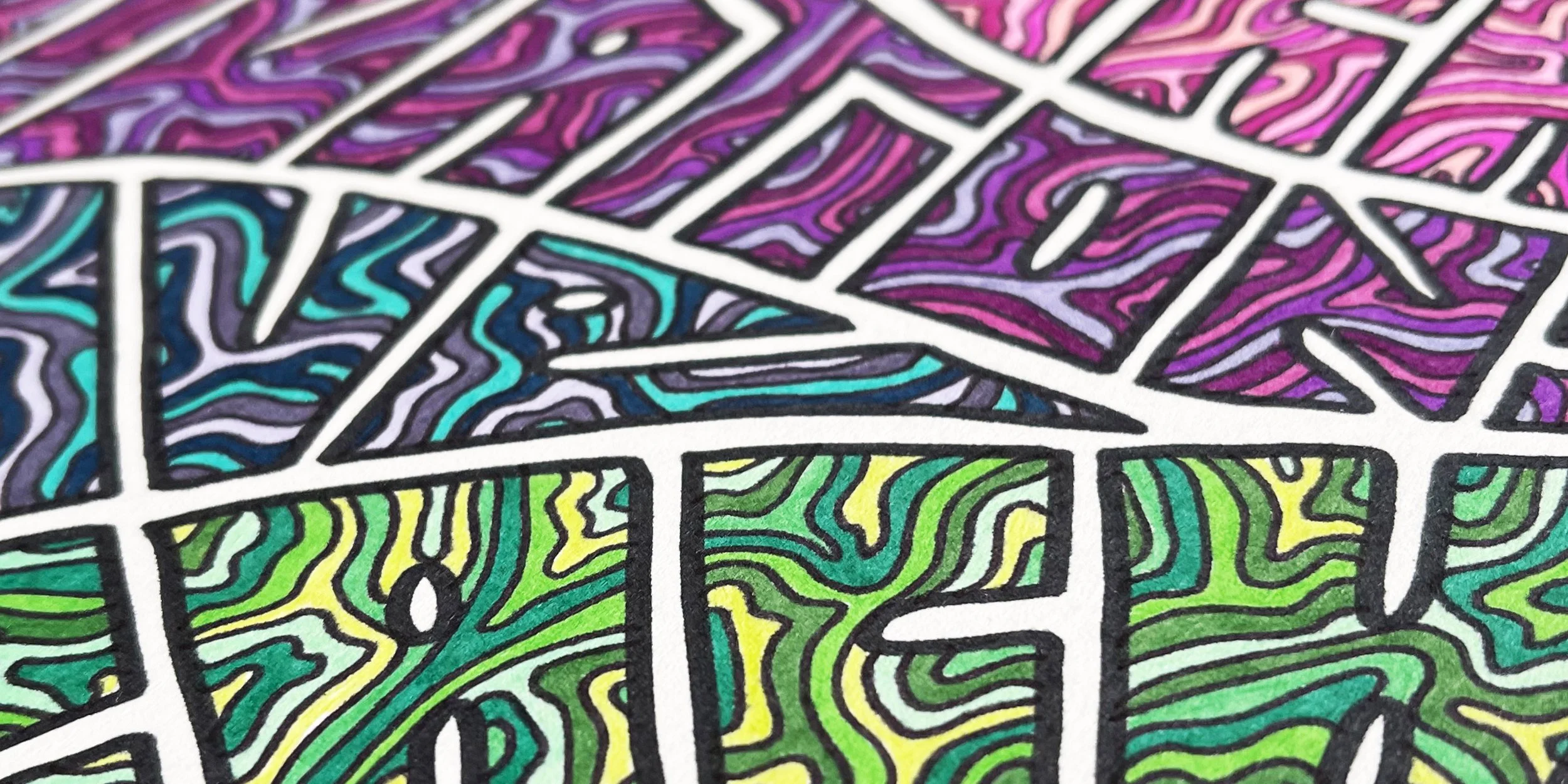 My love for lettering really started to go full steam ahead when I began embellishing cards for friends and family, and creating them from scratch years ago. Since then I’ve experimented mostly with cutout collage lettering (the letters you see made up of small cut squares) and pen and marker on signs, cards, and other pieces.